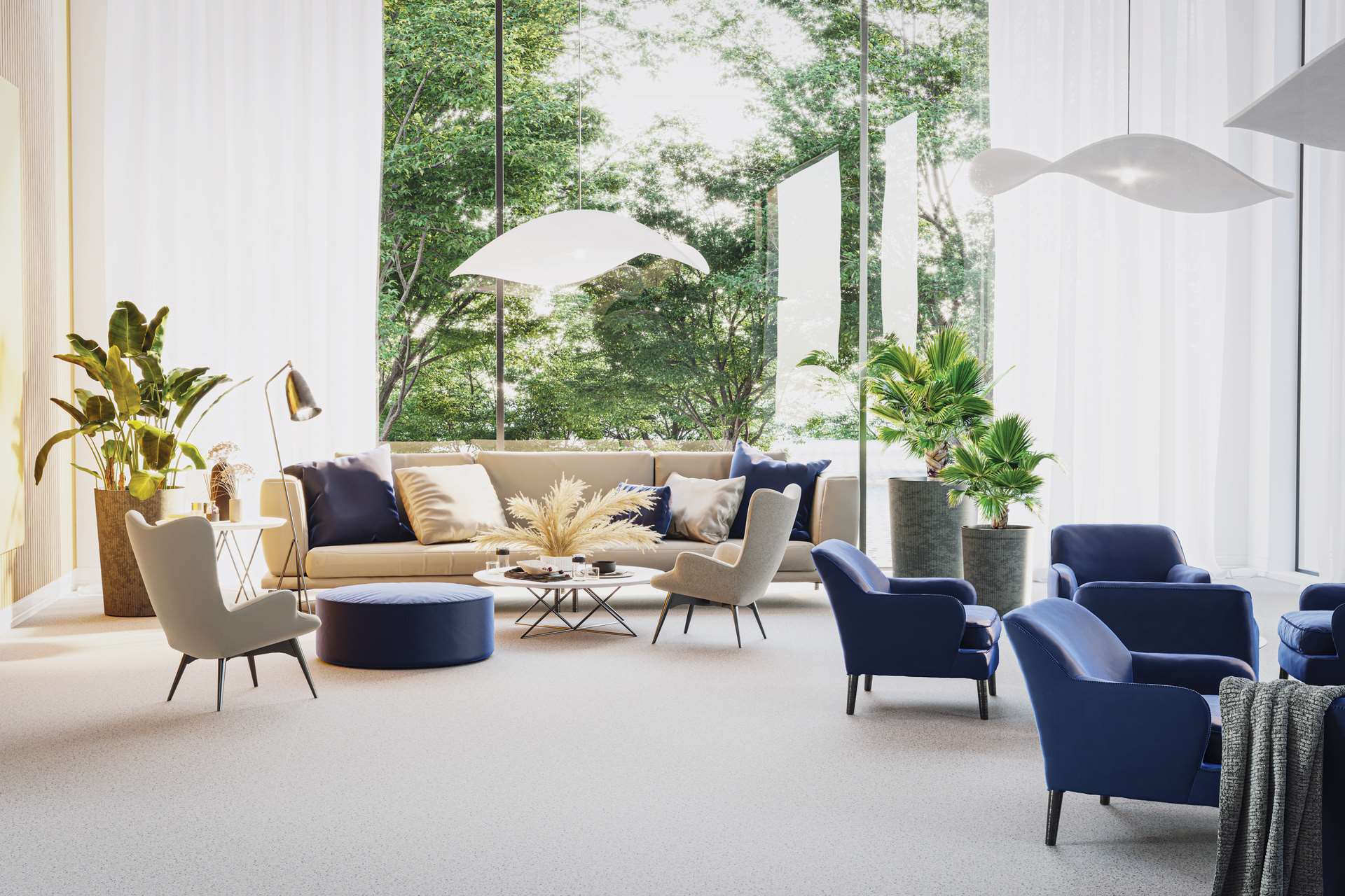 Um die neuen Looks auszuwählen, haben wir eng mit Kunden und Branchenexperten zusammengearbeitet, um die neuesten Trends und Herausforderungen zu erfahren. Diese gemeinschaftliche Arbeitsweise hat zu neuen Webstilen und Terrazzo-Mustern geführt. In Anlehnung an Wasser, Steine, Natur und Wetter haben wir eine neue Palette von Grün-, Blau-, Grau- und Erdtönen entwickelt, die jeweils mit unseren Kunden und Partnern diskutiert und abgestimmt wurden. Erfahren Sie hier mehr über die Designgeschichte für die neuen Looks.