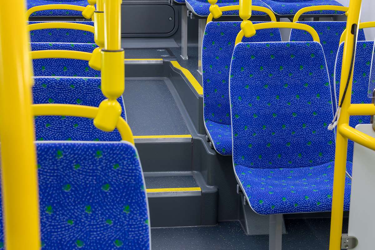 Die Umgestaltung einer starken Markenidentität in ein funktionales Design bedeutet nicht, dass das Design nicht aufregend sein kann. Als die Tranzit-Gruppe ihre neuen Busse für die Regionalverwaltung Greater Wellington in Neuseeland gestaltete, benötigten sie ein widerstandsfähiges Design, das die Farben der Regionalverwaltung beinhaltete. Die Tranzit-Gruppe bestellte ein maßgeschneidertes Design von Altro Transflor Chroma, wobei die Körnung im Bodenbelag mit den Markenfarben der Greater Wellington Regionalverwaltung übereinstimmte. In Verbindung mit passenden Haltebügeln und Sitzmoketten ergab sich eine starke Markenidentität mit einem zeitgenössischen und widerstandsfähigen Stil.