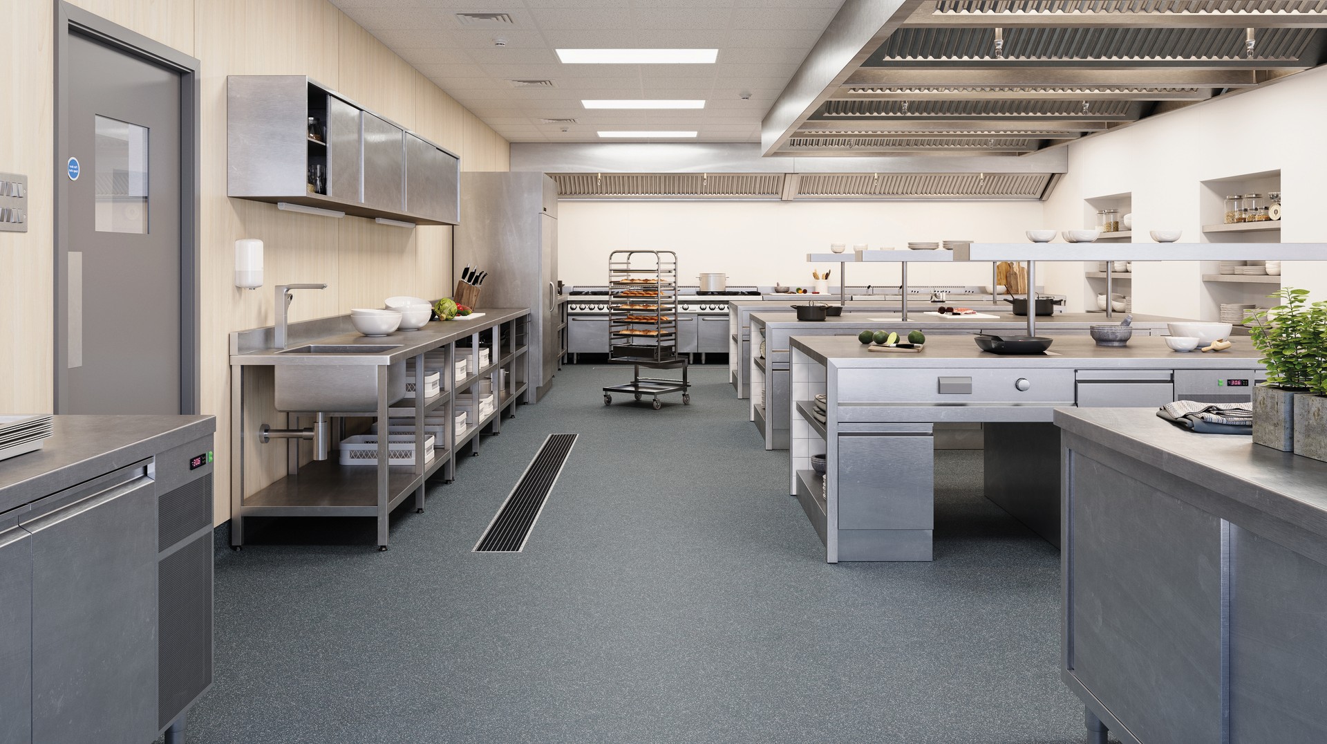 Vom kleinen Café bis zum großen Restaurant mit über 100 Plätzen - alle Küchen müssen strengen Hygieneanforderungen gerecht werden. Unser spezielles Boden- und Wandsystem bietet eine undurchlässige, leicht zu reinigende und sichere Lösung für Küchenumgebungen, die nach dem HACCP-Konzept zugelassen ist und den HSE-Normen entspricht. Unsere Systemlösung sorgt für die Sicherheit und Gesundheit Ihrer Mitarbeiter und Gäste – und schützt die Umwelt.