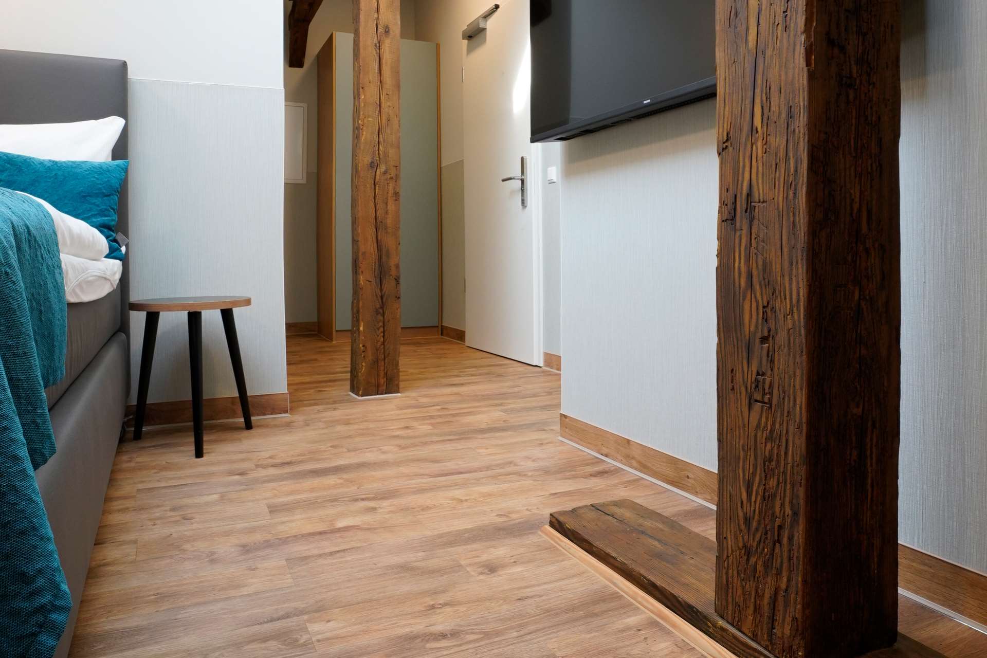 „Unser Gestaltungskonzept zielte darauf ab, die charakteristische Atmosphäre des Hauses durch warme Farben, klassische Texturen und natürliche Strukturen zu betonen und mit modernem Design zu verbinden. Mit den Altro-Böden konnten wir dieses Konzept hervorragend umsetzen: Sie harmonieren optisch mit den alten Holzbalken und erfüllen zugleich sämtliche technischen Anforderungen, die an einen modernen Hotelbetrieb gestellt werden. Ein wesentlicher Faktor war dabei, trotz der baulichen Rahmenbedingungen eine ruhige Raumakustik in den Hotelzimmern zu erzielen.“