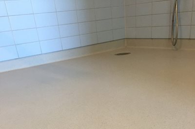 “Altro Aquarius reducerer risikoen for faldulykker til en ud af en million i hele gulvets levetid. Det skyldes hårdkornspartiklerne, som findes gennem hele slidlaget. Badeværelserne er opført med brusebad i hjørnerne, som sikrer optimal support til både beboere og plejere. Skridsikre gulve og let rengøring var essentielle funktioner. Vi har benyttet Altros sikkerhedsgulve i mange år, og vi har gode oplevelser med dem.”