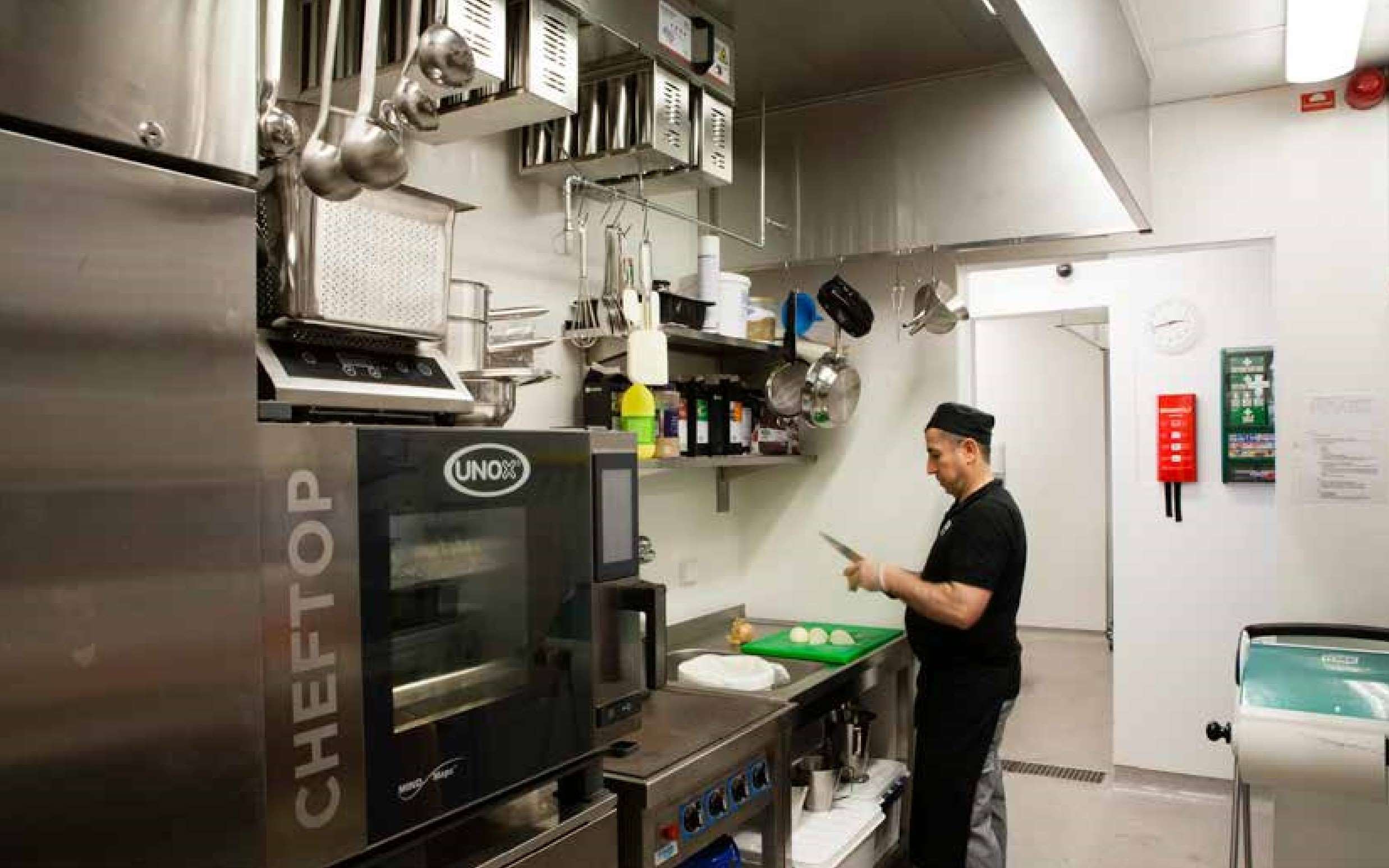 Rosersberg-restauranten har 10 fuldtidsansatte, der serverer omkring 300 måltider hver dag. Restauranten er den første, der bruger Altro Whiterock hygiejnisk vægbeklædning i køkkenet og de tilstødende områder. Altro Whiterock er en fødevaresikker uPVC polymer af høj kvalitet, der er både slagfast og fugefri.