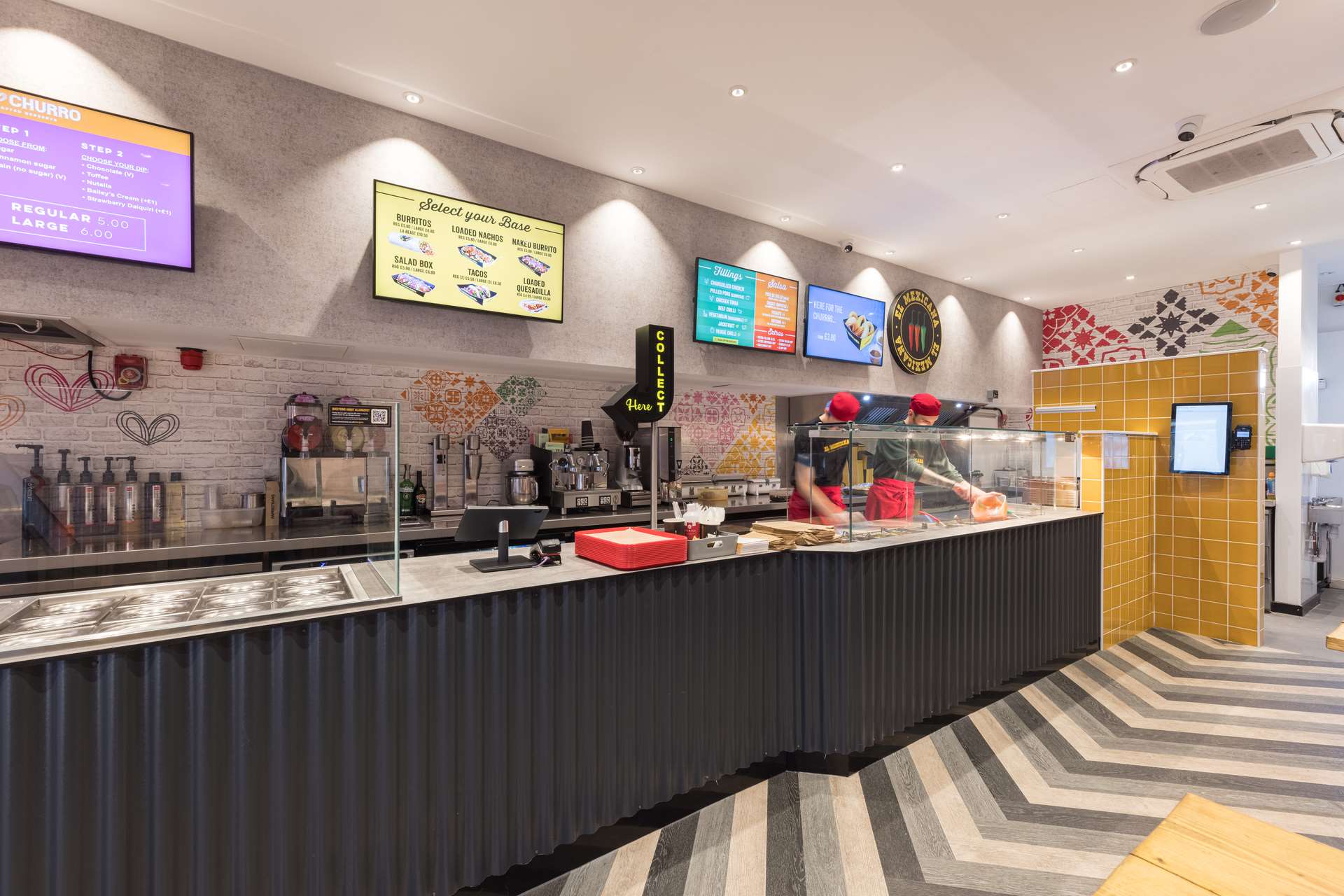 Lazzeri Creative Interiors has been highly commended for its design of El Mexicana restaurant in Chelmsford, featuring Altro Ensemble modular flooring, and Altro Whiterock Digiclad (Custom) walls system.