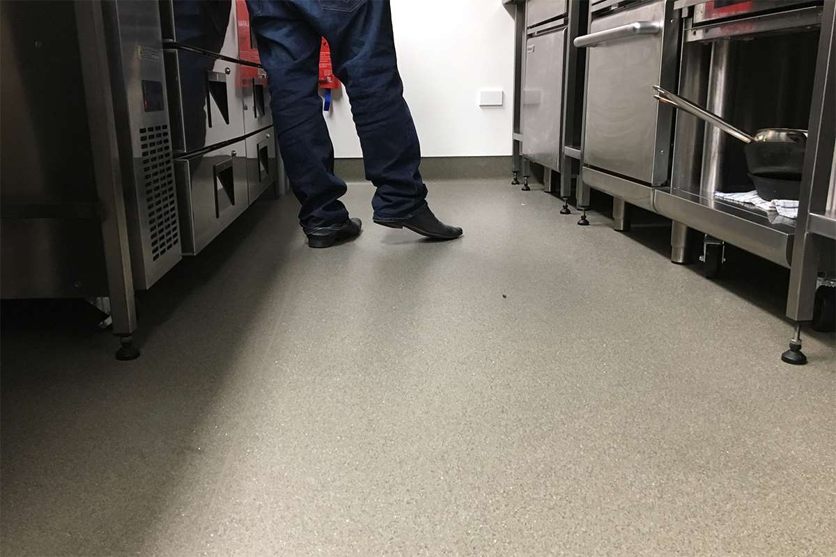 When it comes to a R12 commercial kitchen safety vinyl Altro Stronghold K30 is what I recommend to clients for their kitchens. I know that the 3mm thickness and homogeneous aggregate construction will last for 20 years or more and when my reputation is on the line this is the flooring that I recommend. I also felt that using Altro Whiterock on the walls would be the perfect solution for this commercial kitchen from a hygiene, cleanability and durability point of view and the client was keen on refitting this kitchen only once with products that will last for 20 years or more.