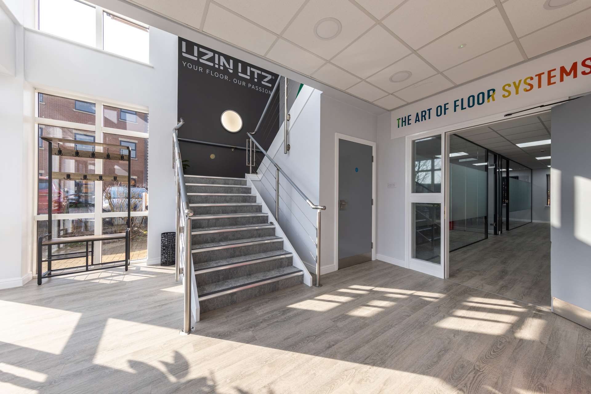With over a 100-year experience, UZIN UTZ UK provides the UK’s flooring professionals with ecological, innovative and high-quality products and solutions. UZIN UTZ UK’s head office in Rugby needed a new floor for their reception, offices, corridors, and kitchen breakout areas. With design good looks, comfort underfoot and a natural flow through the building being a requirement, plus ease of cleaning and noise reduction, Uzin Utz UK turned to Altro for guidance on suitable products.