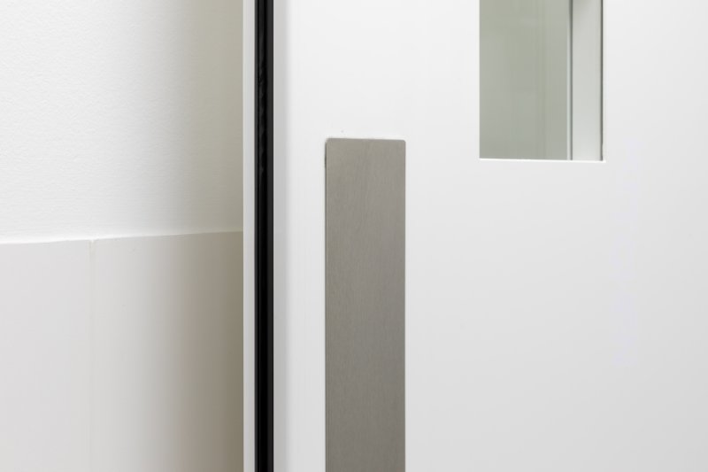 Doorsets faced with Altro Fortis Titanium are hard-wearing, impact and scuff resistant and have a wipe clean finish for easy maintenance. They can be used alongside Altro Fortis Titanium wall protection sheet and Altro Fortis corner protection to create a complete, robust protection system where it’s needed.