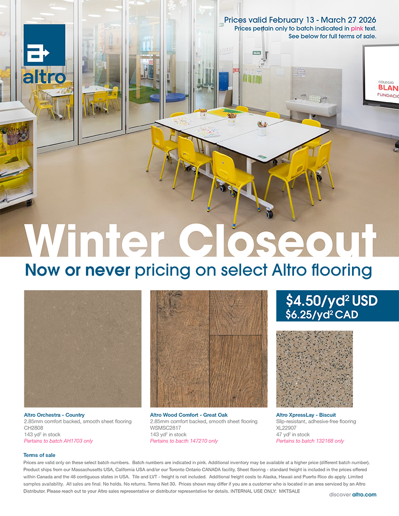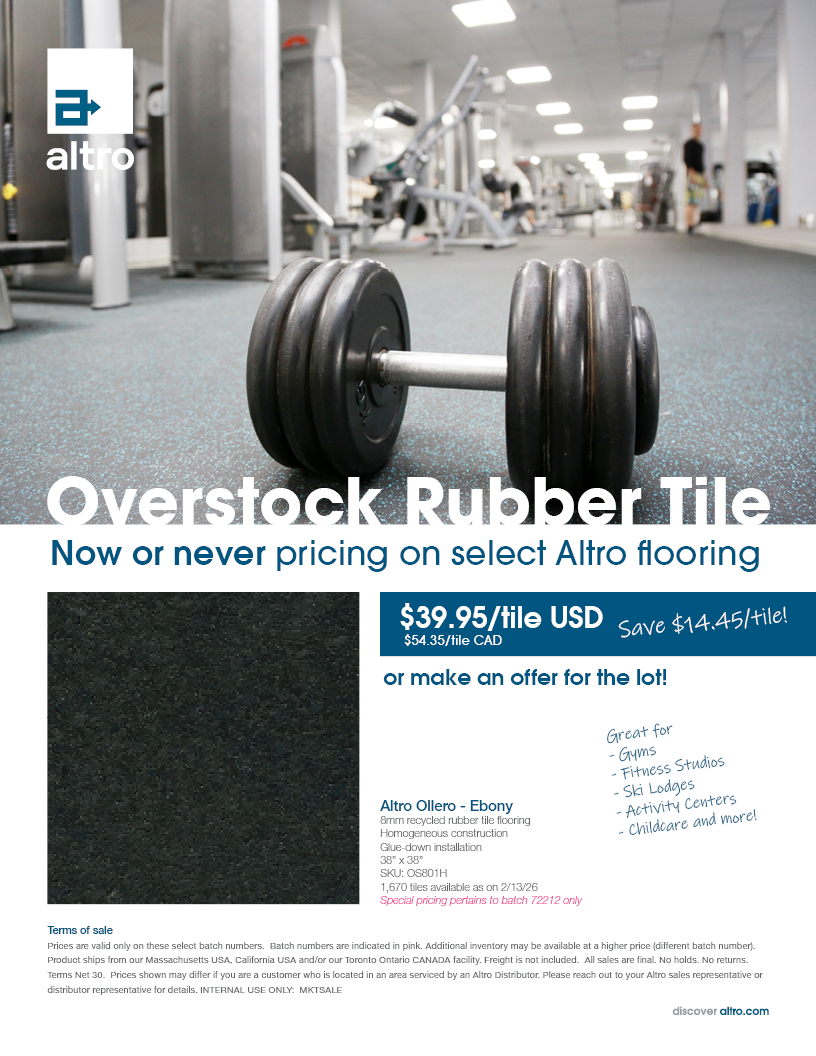 As we refine our ranges and introduce new colors, select products become available at special pricing. It's the same premium Altro flooring you trust, just at a reduced cost. Inventory is limited and moves quickly.